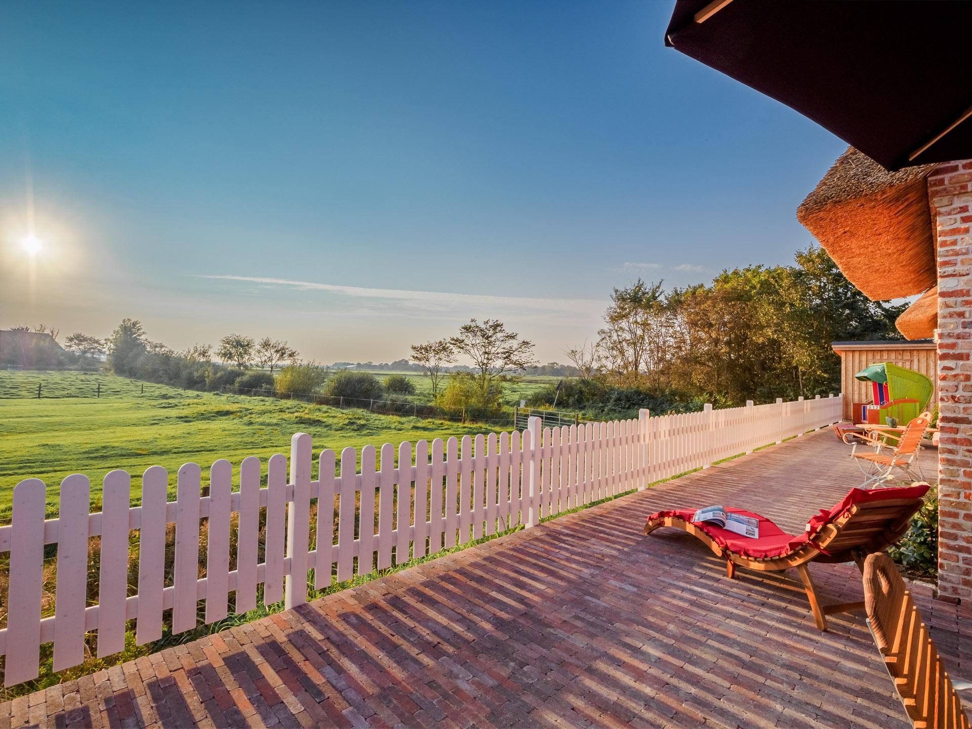 Das exklusive Reetdachhaus "Hermine" liegt am Ortsrand von Tammensiel.